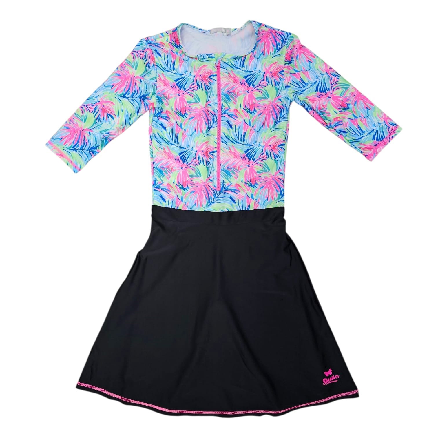 בגד ים לילדות צנוע טוניקה עם מכנס טייץ קצר מחובר