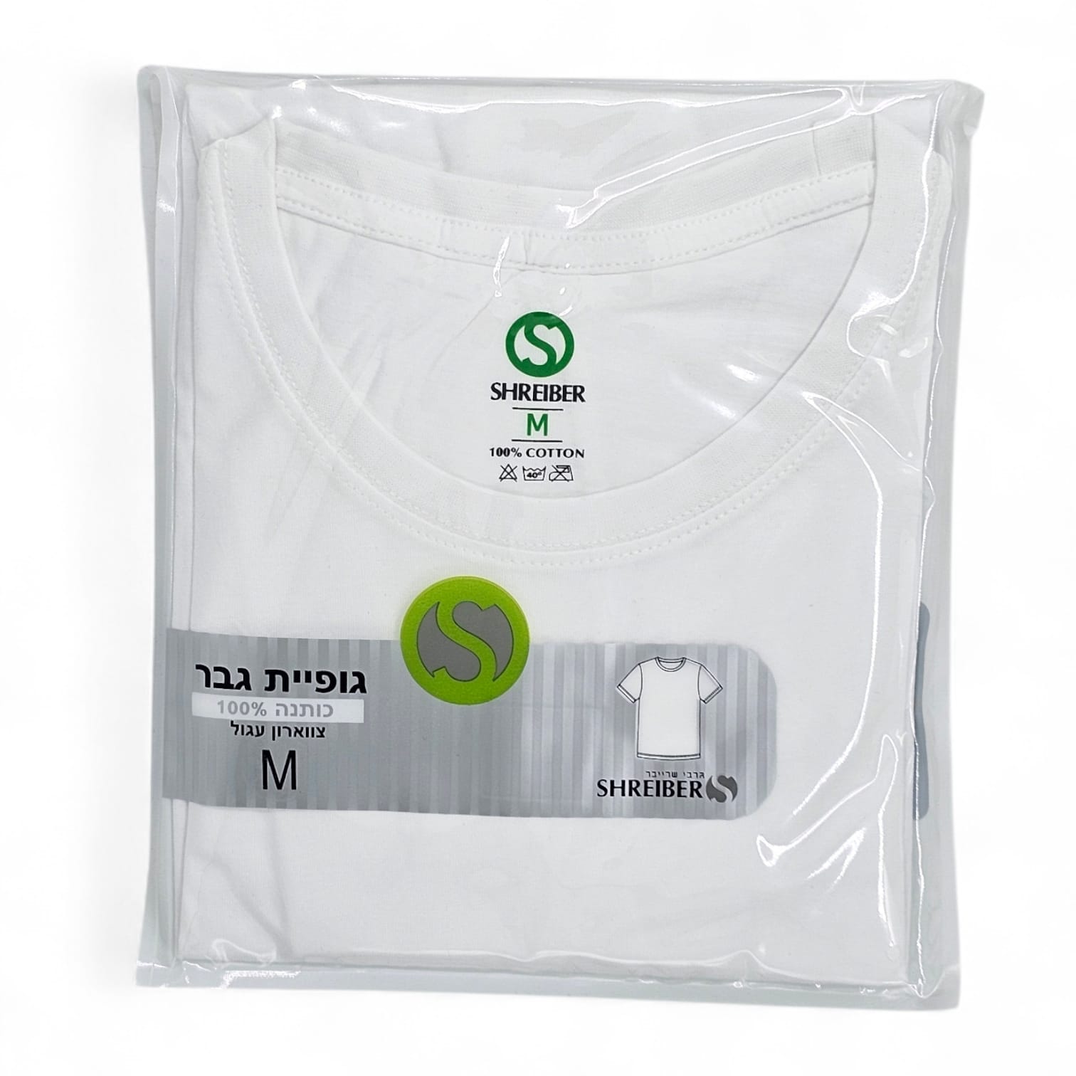 גופיה לקיץ לגברים עם שרוולים קצרים מבית 'שרייבר' בצבע לבן ופתח צוואר עגול – הגופייה העשויה מבדים מאוד איכותיים ומיוחדים לקיץ 100% כותנה, מאפשרת פעילות גופנית ספורטיבית תוך התמודדות מעולה עם תנאי החום והלחות הגבוהה – הזמינו כעת את הגופייה כאן באתר מבלי לצאת מהבית, במחיר משתלם ובמשלוח ישיר עד הבית.