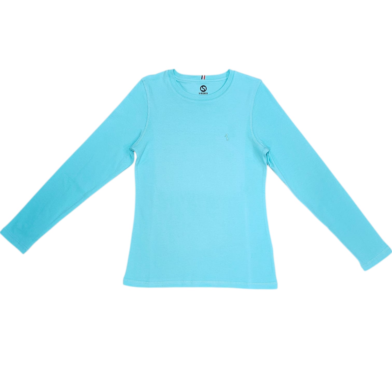 חולצת טישרט כותנה לנערות ונשים בצבע ירוק סלדין מרהיב עם שרוול ארוך בגימור מוקפד.