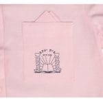 חולצת תלבושת לבנות בית ספר בית יעקב צפון תל אביב, בצבע ורוד חלק, עם לוגו על הכיס.