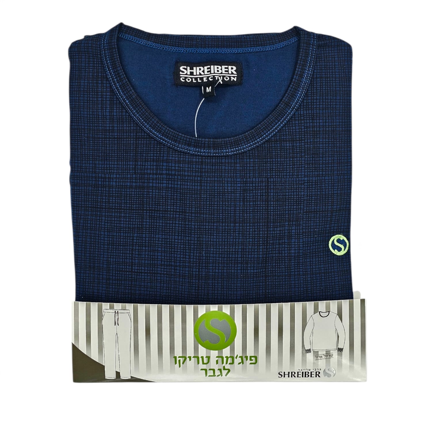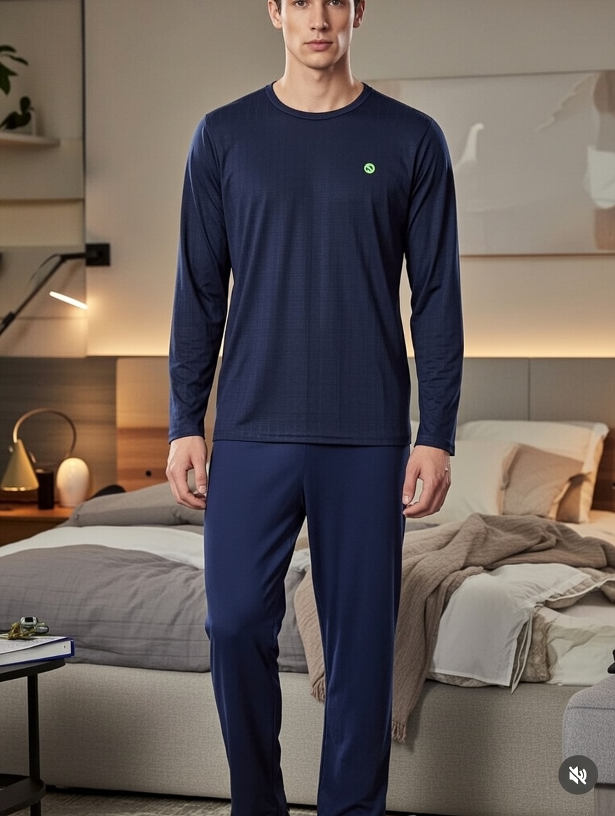402 פיג’מה גבר שרוול ארוך טריקו כחול עיגול ירוק