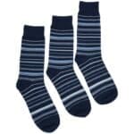 מארז שלושה זוגות גרבי כותנה איכותיות לגבר – דגם 'פסים תכלת כחול כהה'